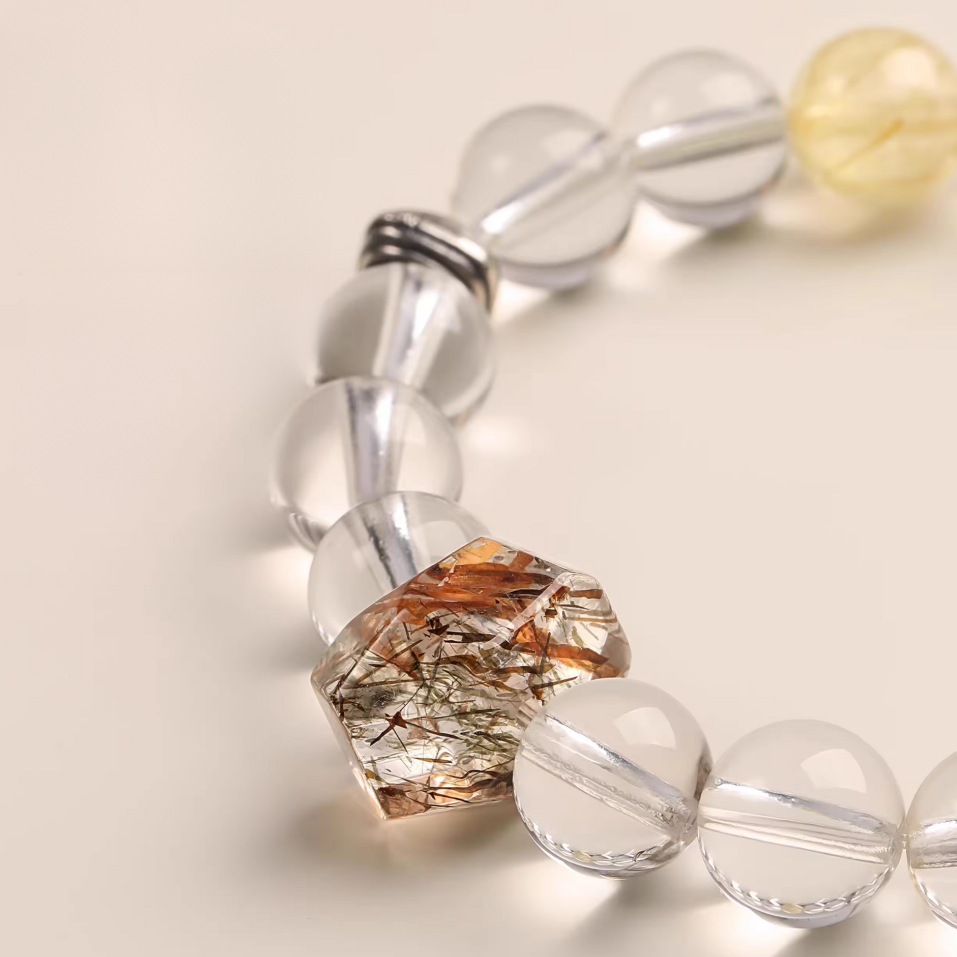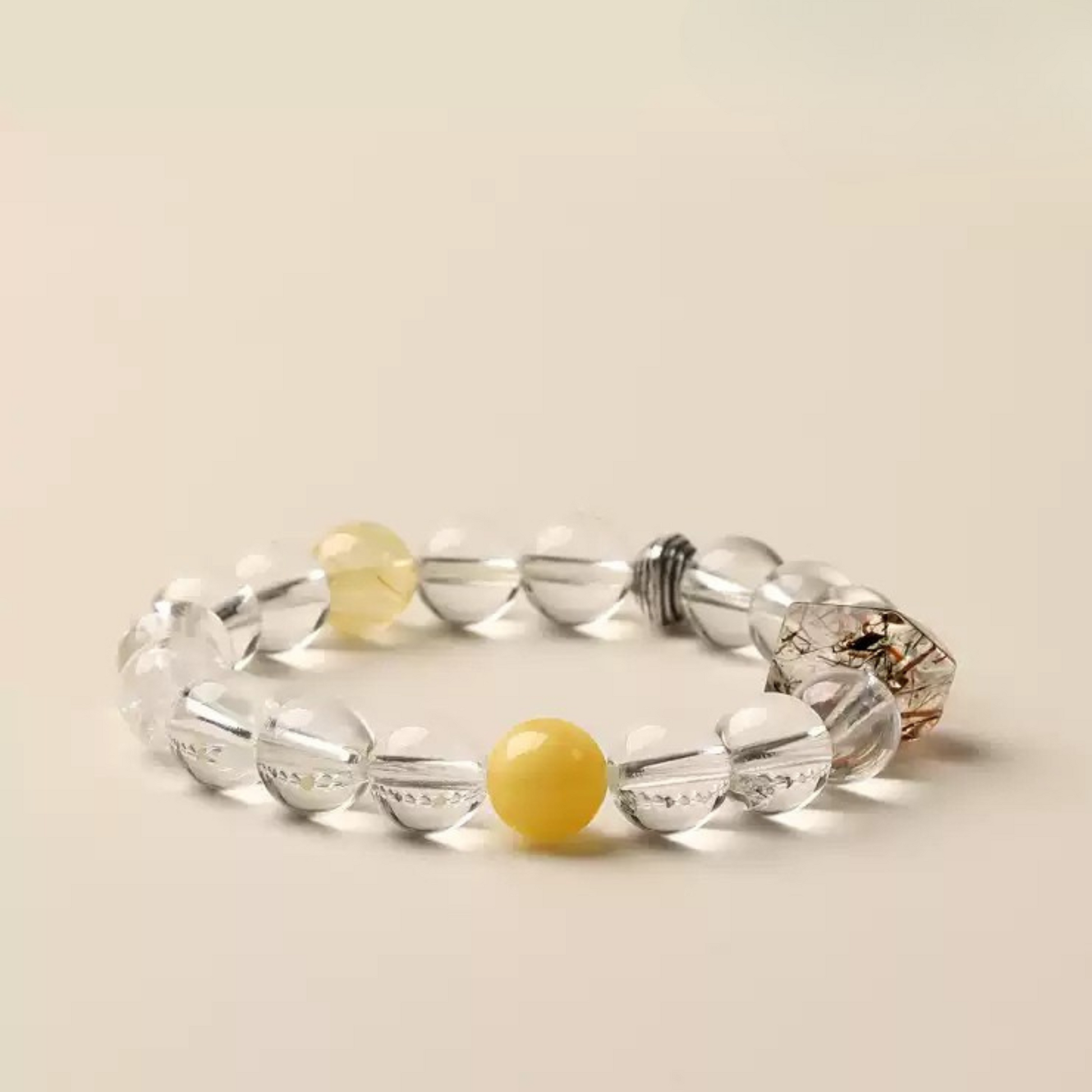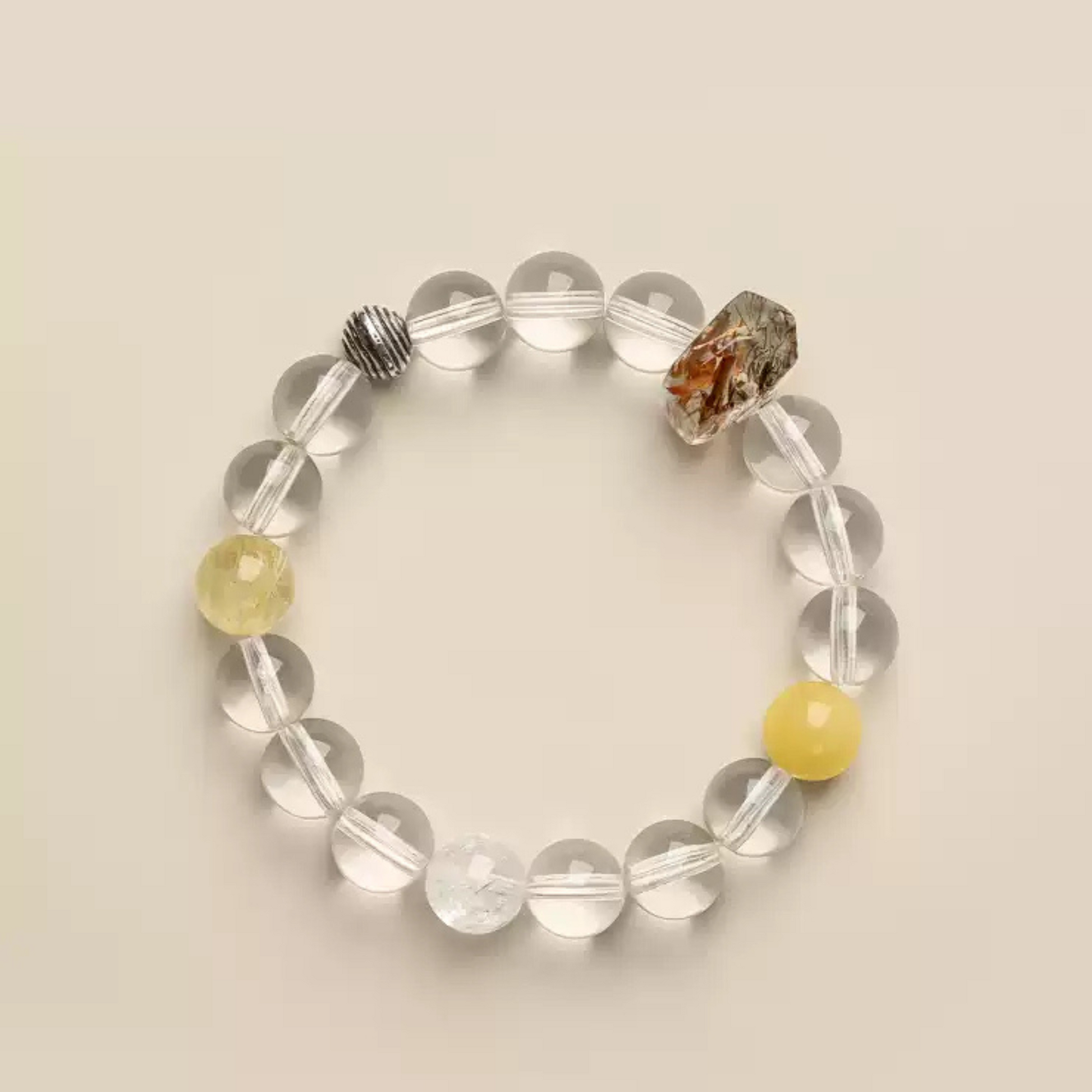 Natural Clear Quartz & Golden Rutilated Quartz Bracelet – Metal Element